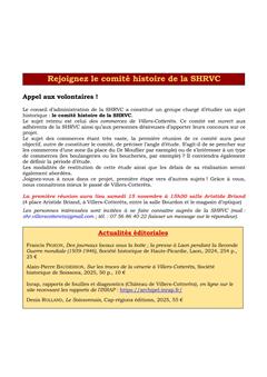 La Société Historique de Villers-Cotterêts, créée en 1904, œuvre à la préservation du riche patrimoine historique de notre ville à travers des recherches, publications, conférences et visites, nous nous engageons à transmettre la mémoire collective de notre région.